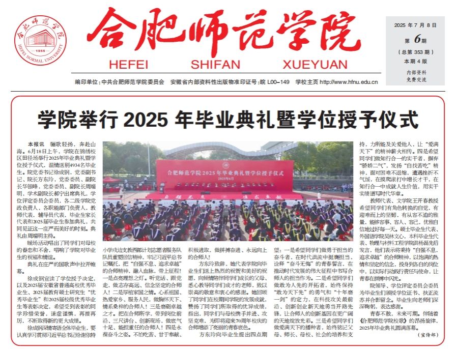 1956年,进修学院经历合并分流的重大调整。以进修学院原有师资、校舍、资产等为基础,独立设置合肥师范专科学校,并由时任进修学院院长张兆甲出任首任党委书记兼校长,以加速普高教育。新成立的合肥师范专科学校最初设有中文、史政、数学、物理、生物五个学科及教育学科教研室、体育教研室,学生785人,教师143人,职工152人。