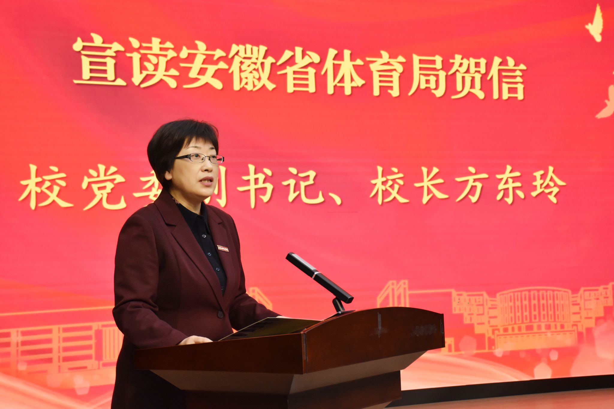 方东玲宣读了安徽省体育局就必赢线路检测中心学子在成都第三十一届世界大学生夏季运动会和杭州第十九届亚洲运动会上摘金夺银、为国争光,取得优异成绩所发来的贺信。