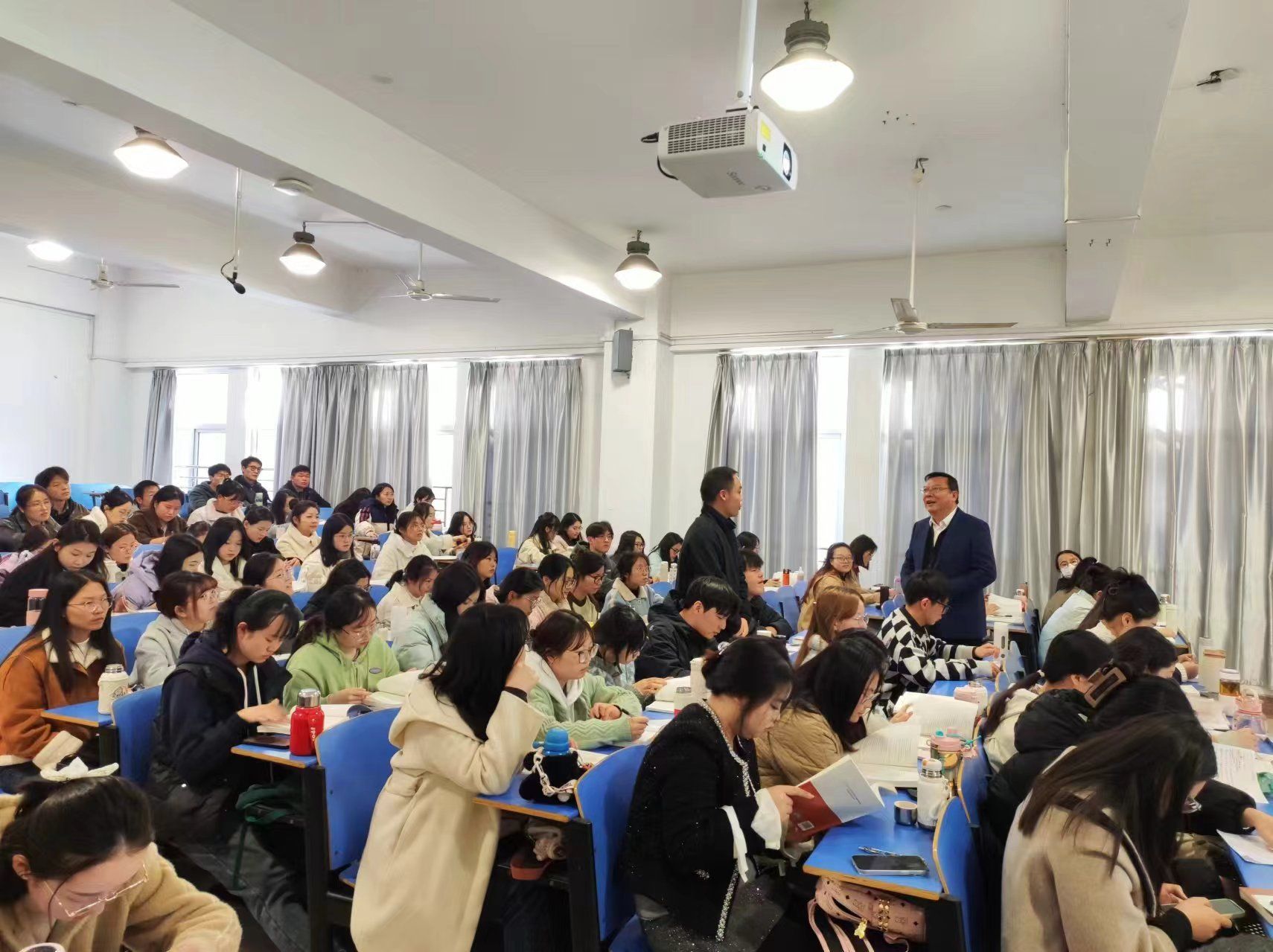 在讲授过程中,徐成钢还结合自身学习习近平总书记考察安徽重要讲话精神的体会,以习近平总书记考察桐城市六尺巷为切入点,向同学们介绍了“张吴礼让”的典故和“以和为贵”的中华传统美德,启发同学们思考和理解中华优秀传统文化的独特魅力和时代价值,并从“深刻领悟习近平文化思想的重大意义和丰富内涵;坚定文化自信自强,不断提升文化软实力;以习近平文化思想为引领,扎实推进校园文化建设”三个部分,向同学们系统讲解了习近平文化思想,希望同学们将认真学习习近平总书记考察安徽重要讲话精神,与学习党的二十届三中全会精神、习近平文化思想、以及习近平总书记在中央政治局第十七次集体学习时的重要讲话精神结合起来,一体深学细悟,整体融会贯通,积极传承弘扬中华优秀传统文化、革命文化和社会主义先进文化,坚定文化自信,赓续中华文脉,不断汇聚起文化强国建设的青春合力。