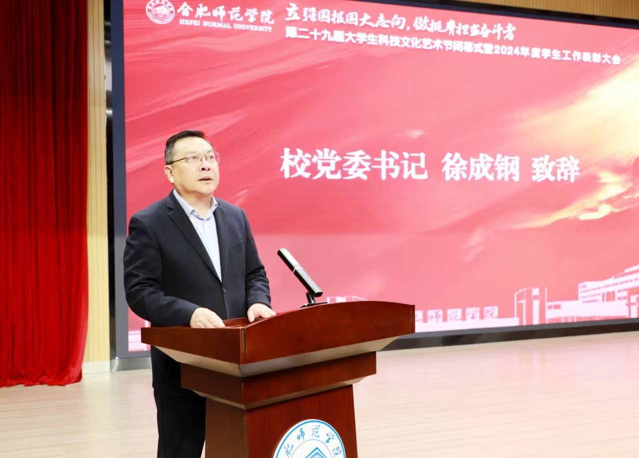 徐成钢为第二十九届大学生科技文化艺术节优秀组织奖颁奖,梁立昌为中国大学生自强之星、安徽省十佳大学生、安徽省大学生自强之星标兵、安徽省大学生自强之星获得者颁奖,徐文林为2024年度国家奖学金、国家励志奖学金获得者颁奖,周端明为第二十九届大学生科技文化艺术节组织奖颁奖,常树宝为第二十九届大学生科技文化艺术节“十佳活动”颁奖。现场还为2023-2024学年学生宿舍文明创建先进学院、2023年度优秀辅导员、2022-2023学年优秀学生奖学金、三好学生、优秀学生干部、2023-2024学年十佳优良学风班级、十佳优良学风宿舍、十佳优良学风个人进行了颁奖。