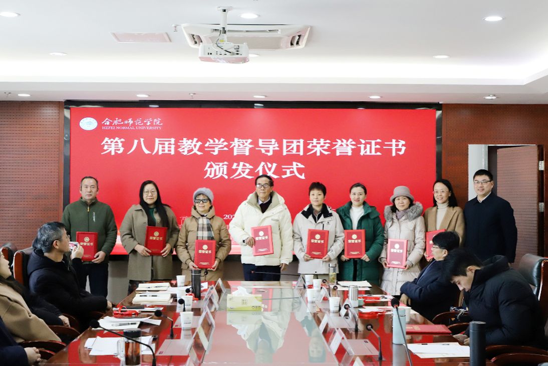 周端明强调了教学督导队伍建设对学校教学质量保障体系建设的重要性,充分肯定了第八届本科教学督导团在维护教学秩序、严格教学规范、提升课堂教学质量、帮助青年教师成长等方面作出的重要贡献,并向第八届教学督导团成员颁发了荣誉证书。