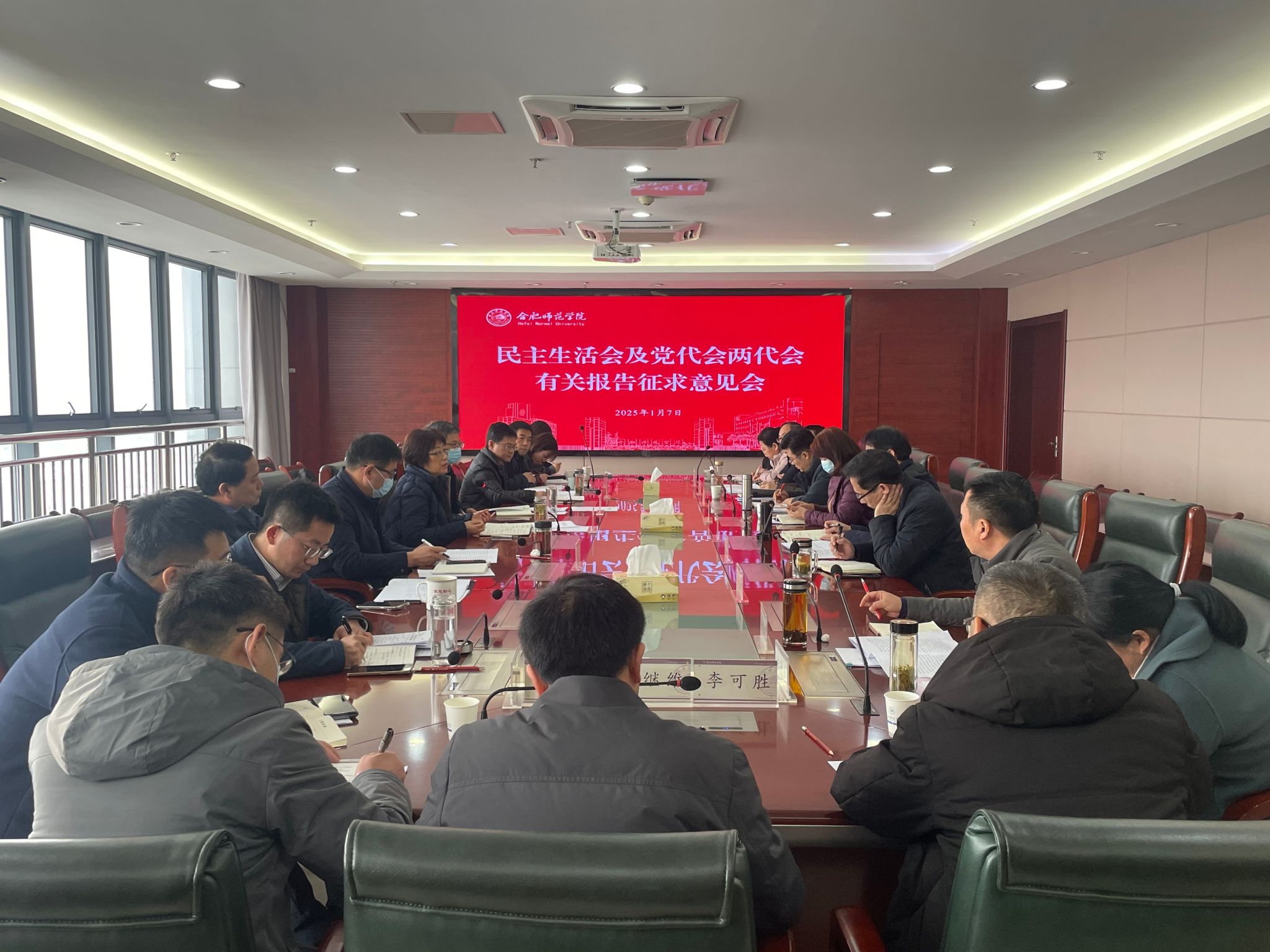 为深入学习贯彻党的二十届三中全会、全国教育大会和习近平总书记考察安徽重要讲话精神,充分发扬民主,凝聚智慧力量,高质量开好学院党委班子民主生活会和第三次党代会2024年年会、八届二次教代会工代会,学院组织多形式多层面征求师生意见建议。1月6日至7日,学院召开2场征求意见会,院党委书记徐成钢,党委副书记、院长方东玲分别出席会议并讲话;党委副书记梁立昌,党委委员、副院长华银峰分别主持会议;党委委员、纪委书记、监察专员徐文林,党委委员、副院长周端明,党委委员赵帮恚、常树宝出席会议。各单位负责人、师生、民主党派及无党派人士等代表参会。