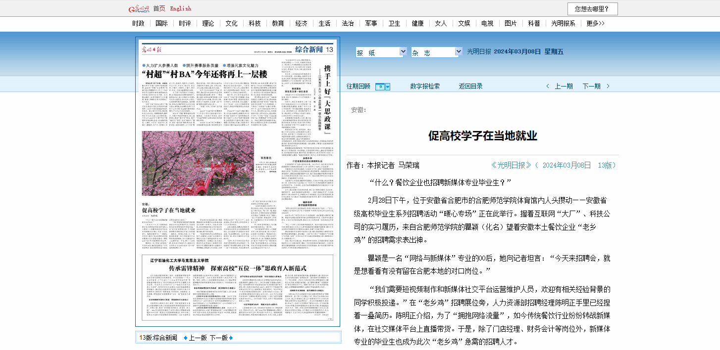 《安徽新闻联播》报道我校承办2024届高校毕业生“暖心帮扶”专场招聘会