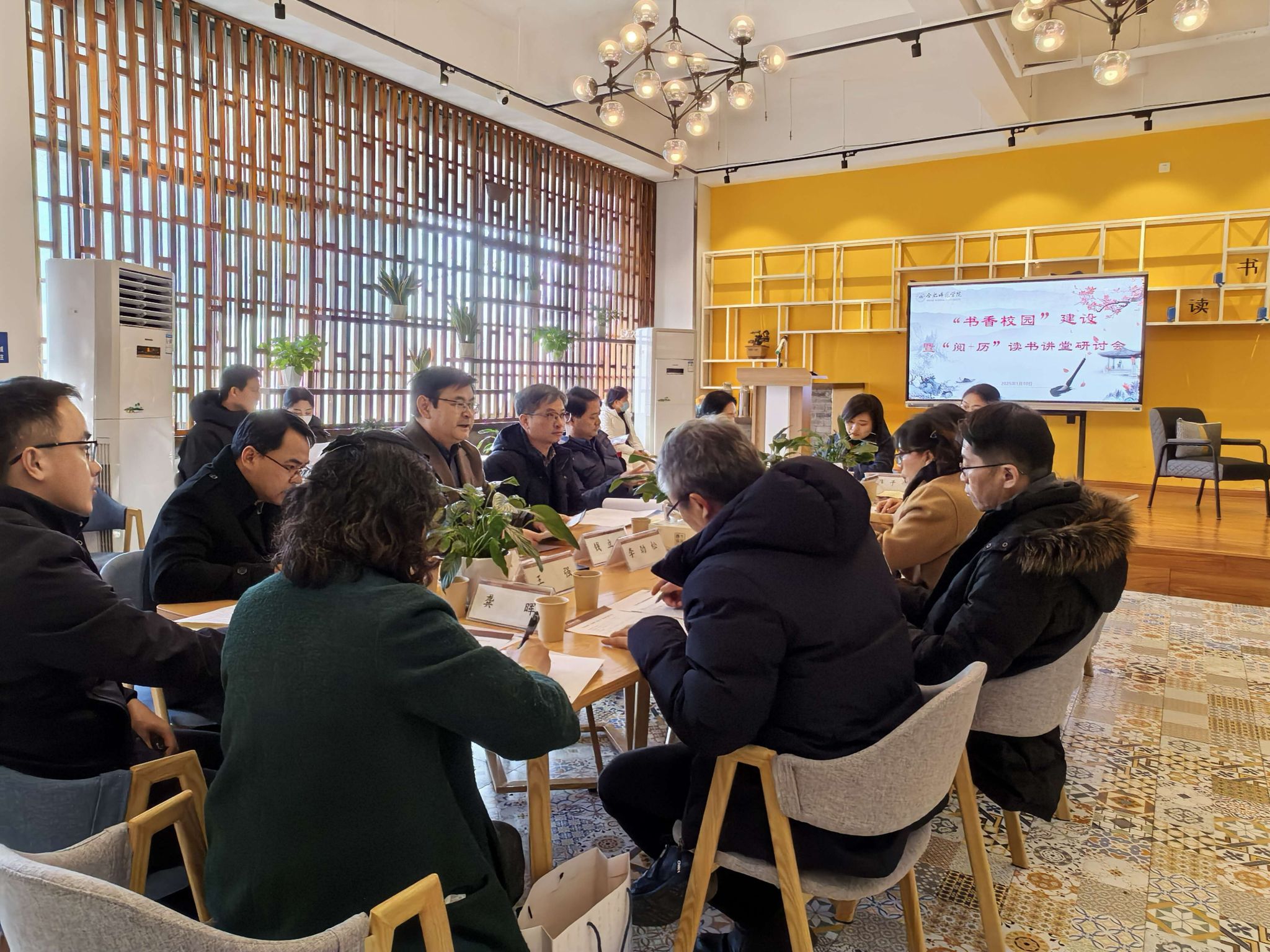 为推进“书香校园”建设,在全校范围进一步营造爱读书、爱学习、爱钻研的良好氛围,1月10日下午,“书香校园”建设暨“阅+历”读书讲堂研讨会在锦绣校区图书馆“阅+历”读书讲堂举行。党委委员、副院长华银峰出席会议。宣传部、教务处、团委、图书馆等部门负责人,“阅+历”读书讲堂授课教师,阅读推广人代表,相关社团代表20余人参加交流研讨。研讨会由教务处负责人钱立青教授主持。