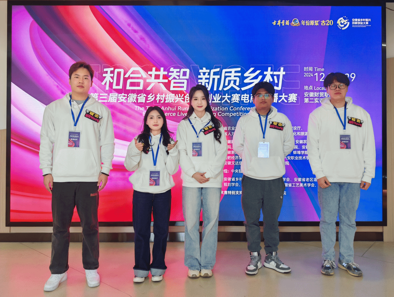 近日,由安徽省农业农村厅、安徽省教育厅、安徽省住房城乡建设厅、安徽省人力资源社会保障厅等共同主办的第三届安徽省乡村振兴创新创业大赛评选结果揭晓,我校文学院“皖”出新花Young团队斩获电商直播赛道一等奖。