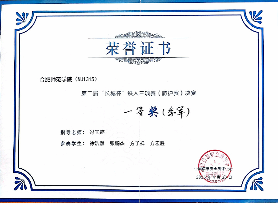 “长城杯”信息安全铁人三项赛(防护赛)由中央网络安全和信息化委员会办公室、教育部、国家市场监督管理总局、国家数据局指导、中国信息安全测评中心、北京师范大学、中国电信集团有限公司、中国移动通信集团有限公司联合主办,以“智能防护、开启数字安全新时代”为主题,共有来自清华大学、复旦大学等知名高校在内的84所高校100支队伍入围全国总决赛。必赢官网参赛团队在总决赛的“实战场景”和“专项能力”两个赛项中沉着应对、稳定发挥,最终以总积分领先的优势获得季军。