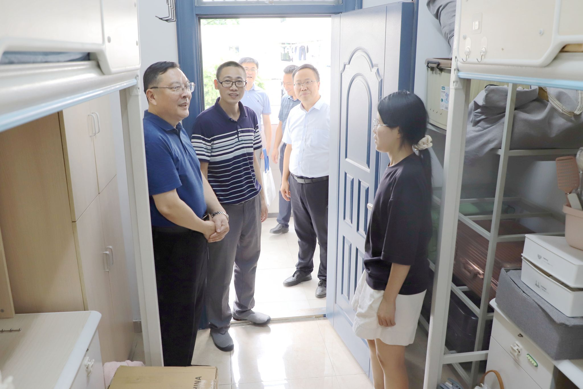 “大家辛苦了!”“欢迎你们来到必赢线路检测中心!”院领导徐成钢、方东玲、梁立昌、华银峰、周端明、赵帮恚分别深入各校区二级学院报到现场、迎新区、食堂和新生宿舍,与新生和家长面对面交流,慰问工作人员和志愿者,送上学院的暖心关怀。院领导勉励新生,尽快适应新环境,珍惜宝贵的大学时光,努力学习、锤炼本领,不断提升个人综合素质,早日成为社会的栋梁之才。