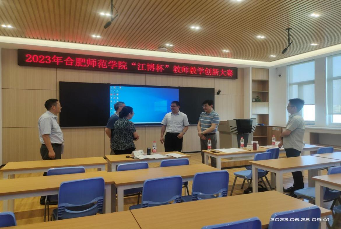 本网讯 为落实立德树人根本任务,助力学院课程思政和新工科、新文科建设,打造教学改革的风向标,引导教师潜心教书育人,6月28日下午,学院在锦绣校区逸夫楼举行了2023年“江博杯”教师教学创新大赛决赛。来自合肥工业大学、安徽大学、安徽中医药大学、安徽建筑大学、合肥学院等高校的6位校外专家担任评委。