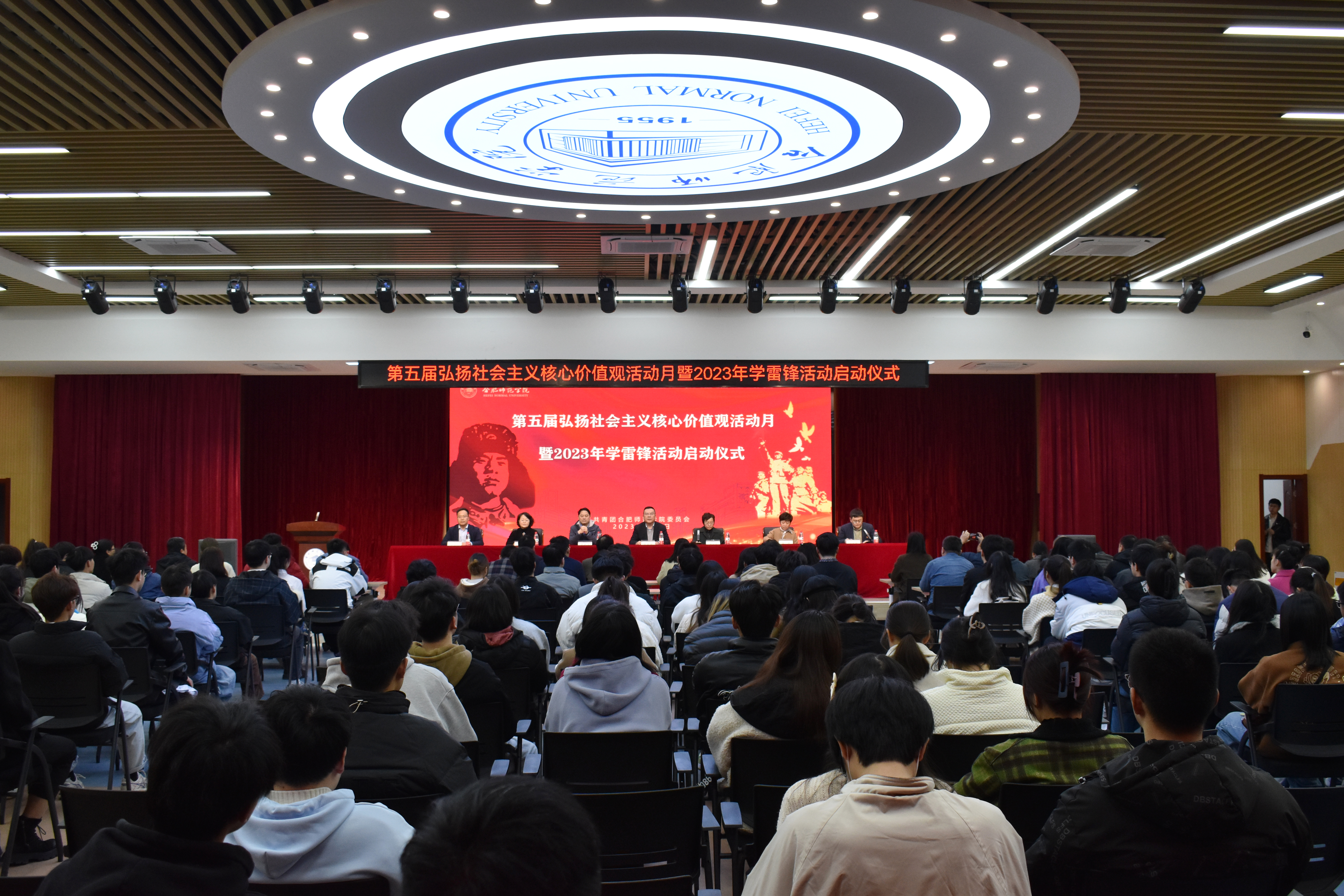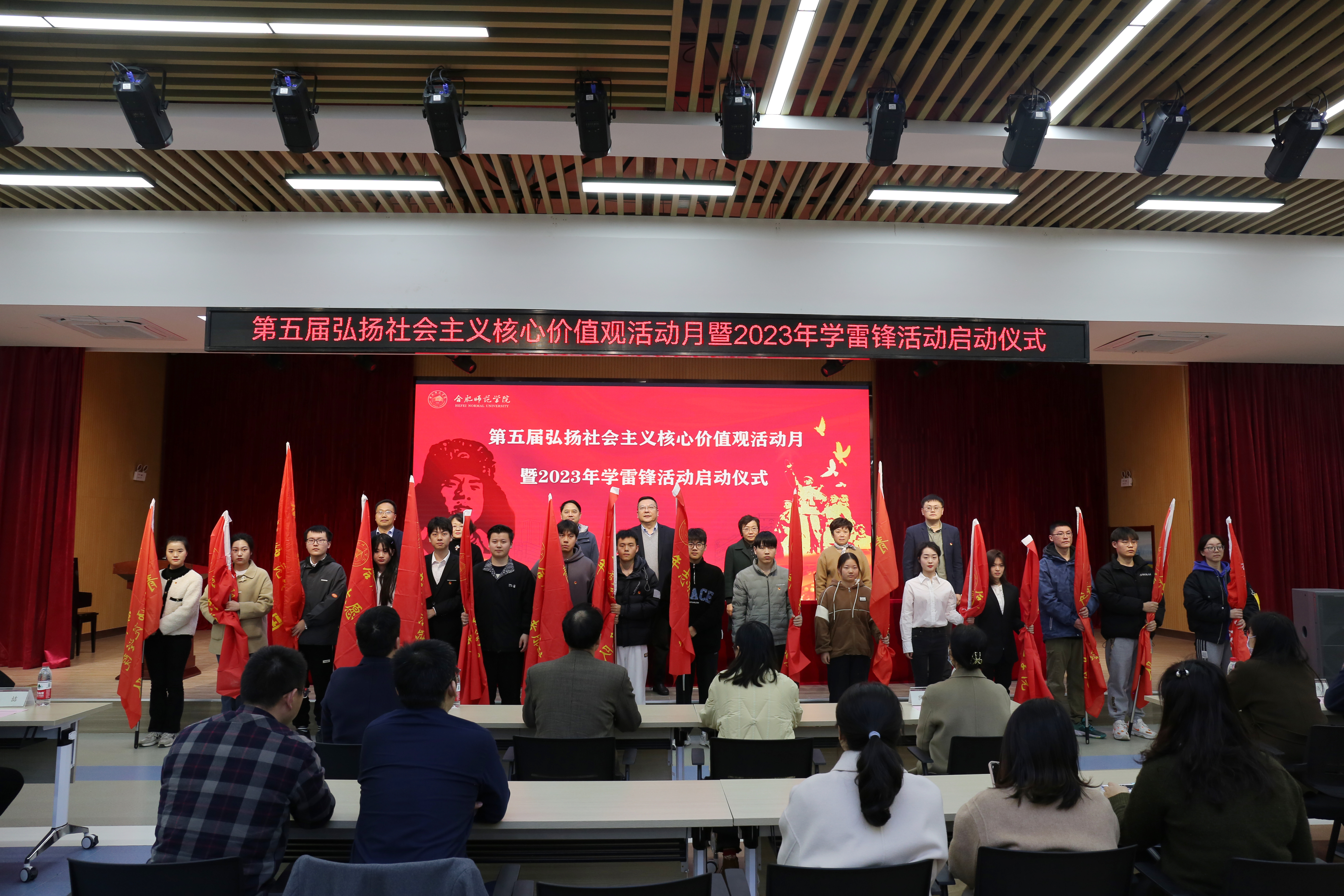 本网讯 3月3日,学院第五届弘扬社会主义核心价值观活动月暨2023年学雷锋活动启动仪式在锦绣校区大学生活动中心举行。院党委书记徐成钢、党委副书记梁立昌,宣传部、学生工作部、就业创业工作处、后勤处、院团委等单位负责人,各二级学院党团负责同志,青年志愿者代表近100人参加启动仪式。