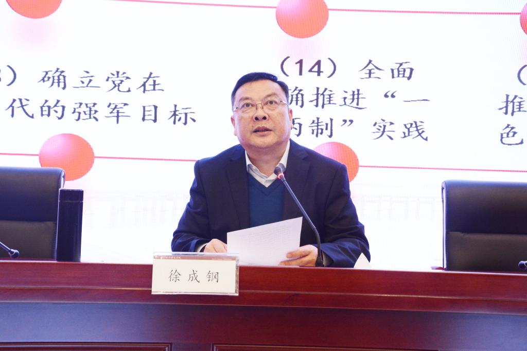 徐成钢以“汲取大会精神力量 绽放青春绚丽之花——深入学习贯彻党的二十大精神”为题,结合自身学习体会,从党的二十大的基本情况、深刻领会党的二十大的重大意义、准确把握党的二十大精神实质、以党的二十大精神为指引,全面推进学校高质量内涵式发展等方面进行了全面、深入、系统、有针对性的宣讲。