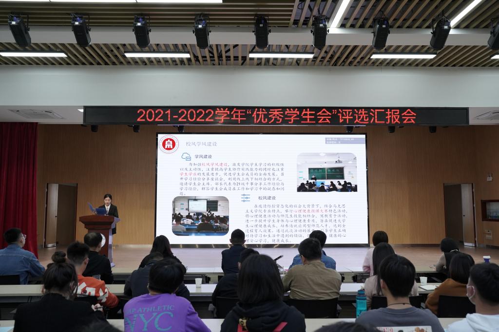 本网讯 10月12日中午,学院于锦绣校区大学生活动中心举行2021-2022学年“优秀学生会”评选汇报会。依据《必赢线路检测中心优秀学生会、优秀学生会干部评选办法(试行)》,经过前期材料申报、资格审查,14个二级学院学生会进入现场评审环节。组织部、宣传部、教务处、学生工作部、就业创业工作处相关教师,院团委全体人员,各二级学院学生代表参加评审。