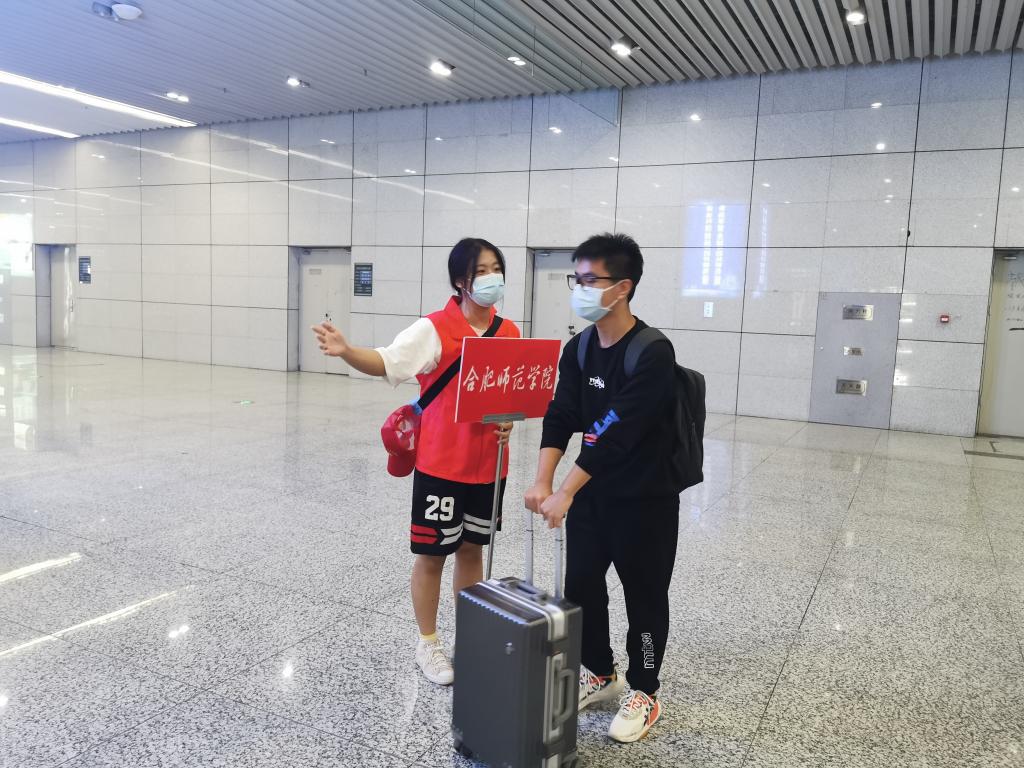 七时将至,“小红帽”们已经到达必赢官网在合肥南站、合肥站设置的迎新接待点。在老师的指导下,“小红帽”们按照接站、引导和跟车的小组分工,互相协作配合,全天守候。在接站地点,“小红帽”们主动为新生搬运行李,热情地护送他们至校园接驳车候车点。路途中,随行的“小红帽”们为学弟学妹们详细介绍报道流程和学校具体情况,并细心地答疑解惑。到校后,“小红帽”们自发形成行李搬运接力线,既保证新生行李有序运放,又提高了志愿工作效率,防止行李积压造成校门口交通堵塞。