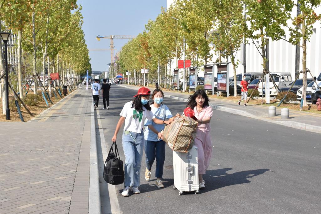 “开学前一直担心孩子行李笨重搬运不便,但是今天上午,刚到校门就有志愿学生过来和我们进行沟通对接,他们热情的笑容和真诚的话语一下子就打消了我们的顾虑。”“小红帽”们用臂膀扛起新生行囊、用热情介绍校园周遭、用细心解答心生疑惑在校园内外描绘了一幅迎新志愿图景。
