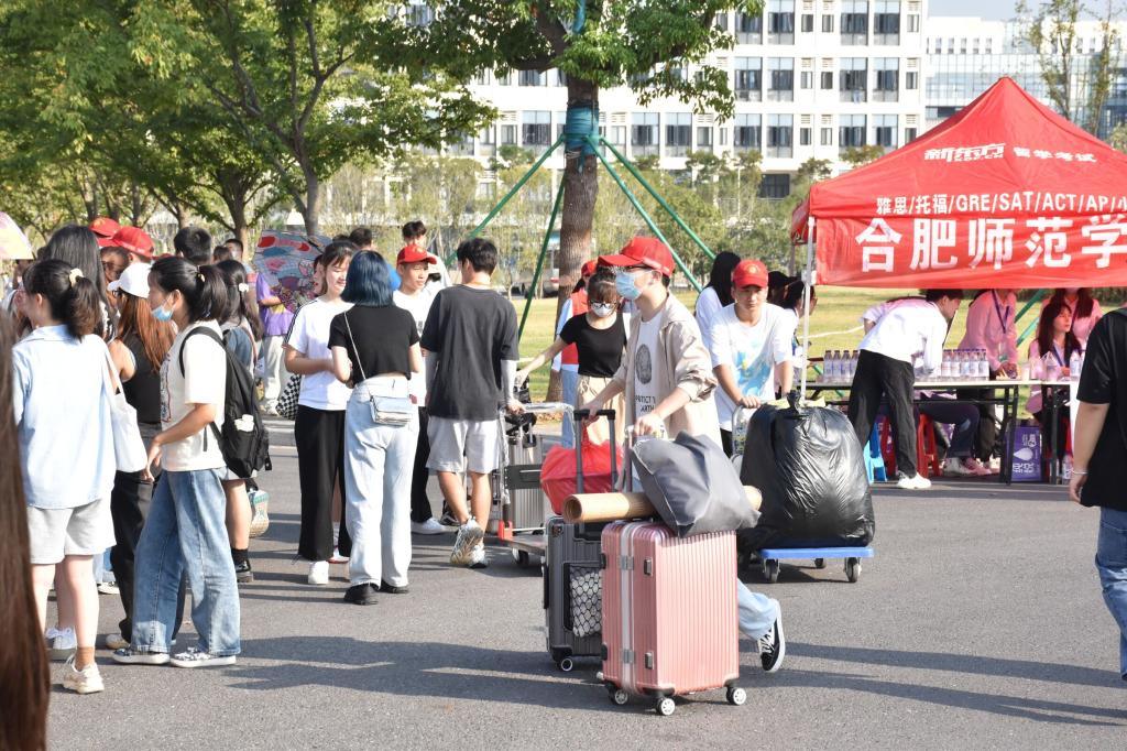 七时许,“小红帽”们在校园东门口整齐列队,热情的接过新生们的行李,引导他们有序核验48小时核酸阴性报告和“两码”,并带领前往核酸集中检测处。至新生报到咨询服务台,各二级学院事先在校门口搭建好的帐篷有序醒目地摆放着。来自二级学院的“小红帽”们手举指引牌,为新生提供报到咨询、专业讲解、校园文化介绍等服务。与此同时,由院学生会、学生社团文化服务中心、合师青年传媒中心、青年志愿者联合会、“第二课堂”学分认证中心等校级学生组织组成的志愿队伍也活跃在校园各处,共同保障着迎新工作的顺利完成。