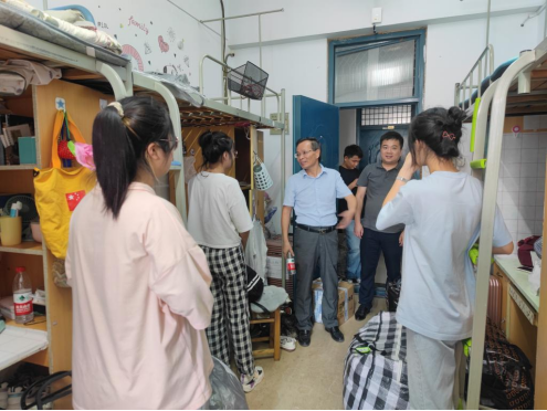细致入微展情怀。为更好掌握学生适应情况,各二级学院负责人、辅导员及时走访宿舍、学生,听取学生意见和诉求。刘铭传学院第一时间开展实地走访,询问并排查了5栋宿舍提质改造遗留问题,并对具体问题进行耐心解答。文学院、外语学院等学院领导、辅导员进学生宿舍,查看学生安顿情况,并叮嘱大家调整心态,适应新环境,鼓励学生用更加饱满的精神状态迎接新学期、新征程。(学生工作处:袁月)