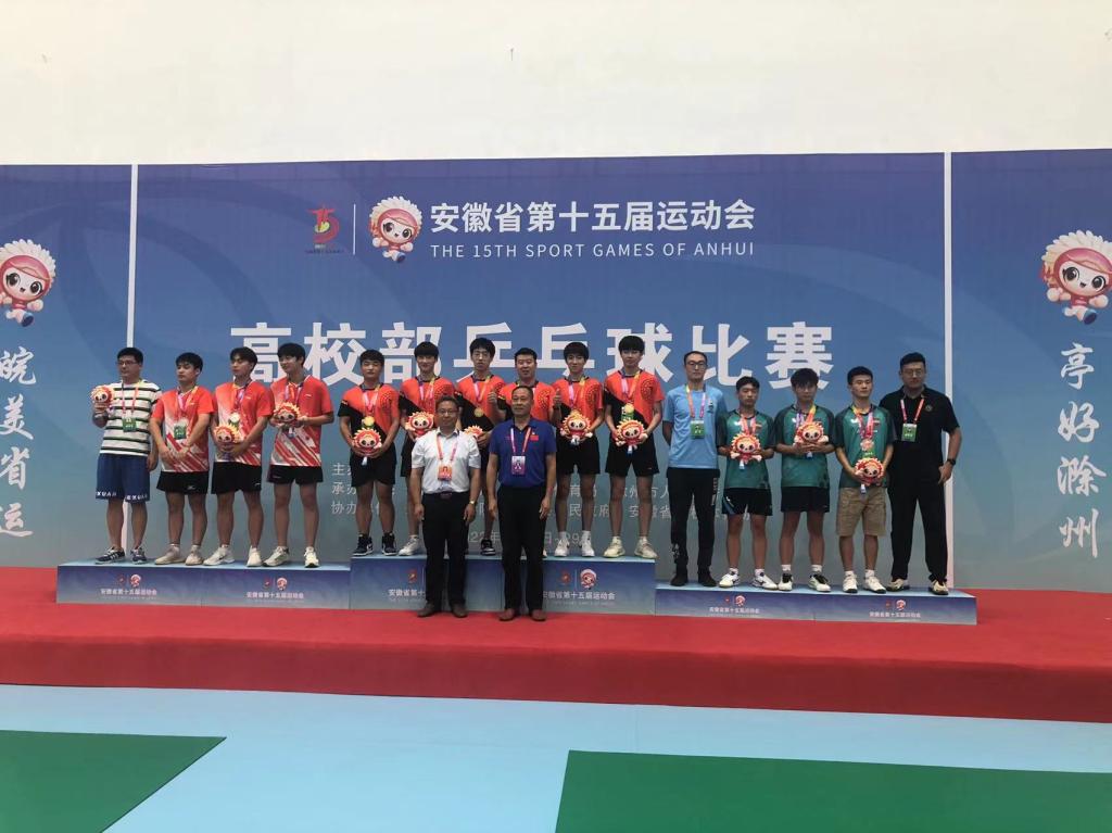 本网讯 8月24日-8月29日,由省政府主办,省教育厅、省体育局、滁州市人民政府承办的安徽省第十五届运动会高校部乒乓球比赛在安徽科技学院举行。本次比赛设有甲组(非体育专业本科院校)、乙组(非体育专业高职院校)、丙组(体育专业本科院校)三个组别。共有来自全省40所高校的304名运动员参赛。必赢官网组队参加了丙组男子项目比赛,包揽男子单打前三名,收获男子双打冠军,获得男子团体冠军的好成绩,并获得体育道德风尚奖。