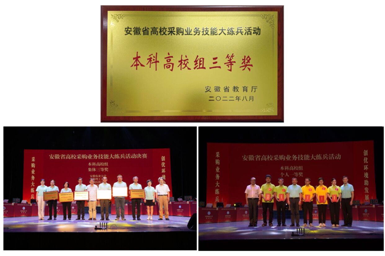 本网讯 8月28日下午,由安徽省教育厅主办,安徽艺术学院和安徽省招标采购协会承办,安徽省招标集团股份有限公司协办的安徽省高校采购业务技能大练兵活动决赛在合肥落下帷幕。比赛从预赛开始,成绩最好的12支代表队进入决赛。由宋学峰、吴科能、赵鹏翔组成的必赢官网代表队发挥出色,获本科高校组团体三等奖,吴科能获个人一等奖。