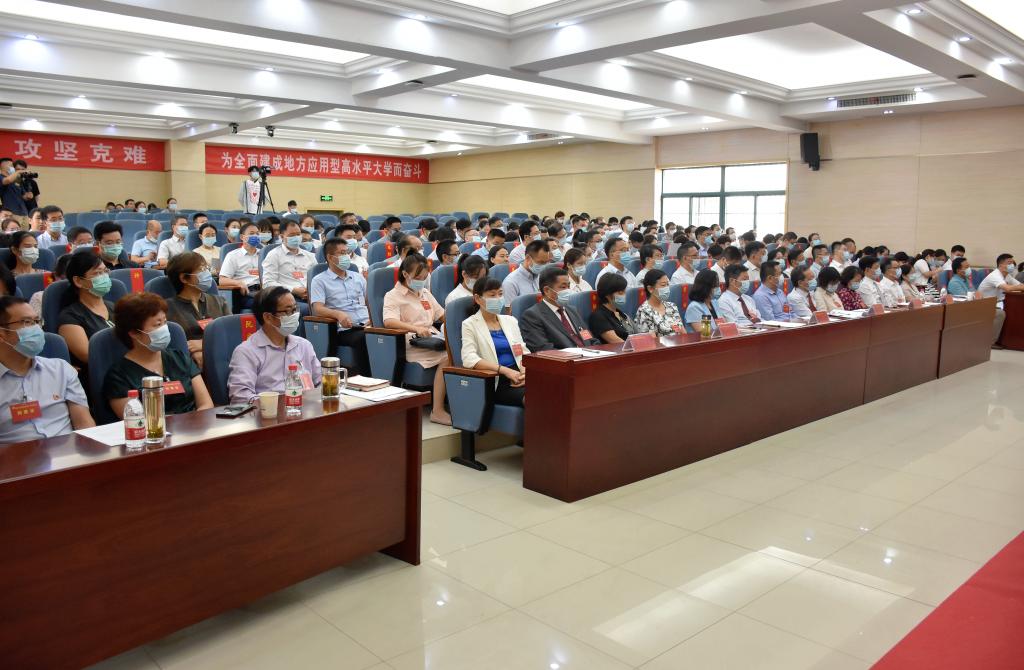 报告强调,全面建成特色鲜明的地方应用型高水平大学,关键在党,关键在人。要坚决贯彻中央和省委关于“全面从严治党”的战略部署,强化政治建设统领,深化创新理论武装,建强干部人才队伍,夯实党的基层基础,抓好党风廉政建设,凝聚改革发展合力,以更高的站位、更高的标准全面强化党建引领保障作用,汇聚起共建“五个合师”的强大正能量。