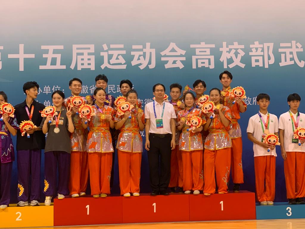 本届省运会武术比赛展现了合师武术项目教学训练的高水准、高水平、高质量,优异的成绩更是学校竞技体育综合实力提升和学校人才培养质量提升的重要体现。在省运会接下来的比赛中,合师学子将继续发扬中华体育精神和奥林匹克精神,充分发扬“自强不息 追求卓越”的合师精神,继续拼搏,再创佳绩,为校争光。(体育科学学院)