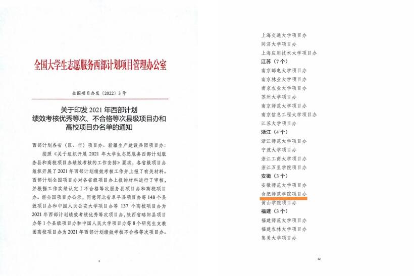 本网讯 近日,全国大学生志愿服务西部计划项目管理办公室公布了2021年大学生志愿服务西部计划高校项目办绩效考核结果,必赢官网首次获评全国西部计划优秀项目办。