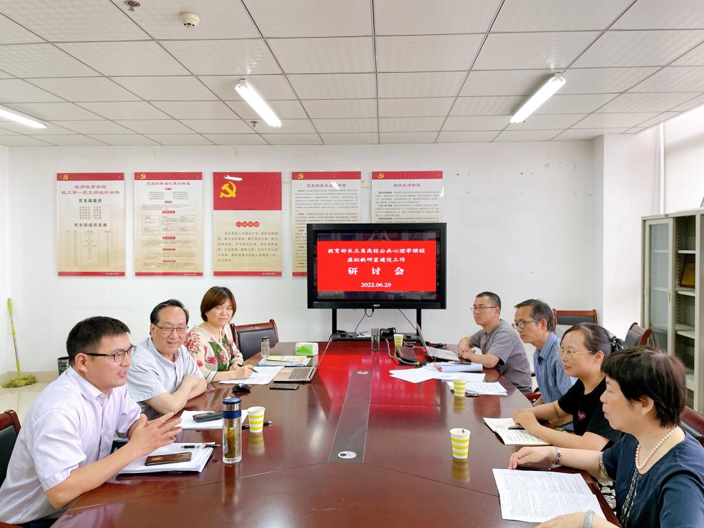本网讯 6月29日上午,教育部“长三角高校公共心理学课程虚拟教研室”建设工作研讨会在学院行知楼706会议室召开,党委委员、副院长周端明,虚拟教研室负责人姚本先教授,教师教育学院院长李群教授,心理系教研室主任吴桂翎教授及教师代表蒋名平、姚琼、胡哲老师参加会议。