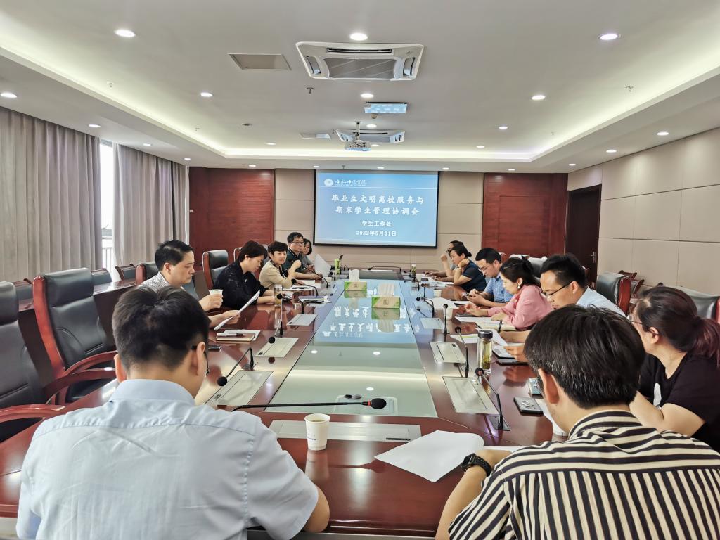 学院先后组织召开毕业生文明离校服务工作协调会、各二级学院党委副书记工作例会以及毕业班辅导员工作布置会,并印发《关于做好2022届毕业生文明离校相关管理服务工作的通知》《关于认真做好2021届毕业生文明离校教育的通知》,全面统筹布置毕业生文明离校工作,梳理工作任务、日程安排、办理流程,对毕业生生活保障、毕业证书和报到证发放、党团关系转接、户口迁移、学费缴纳、图书退还、退宿手续办理等工作进行了详细安排,保障离校工作平稳有序。