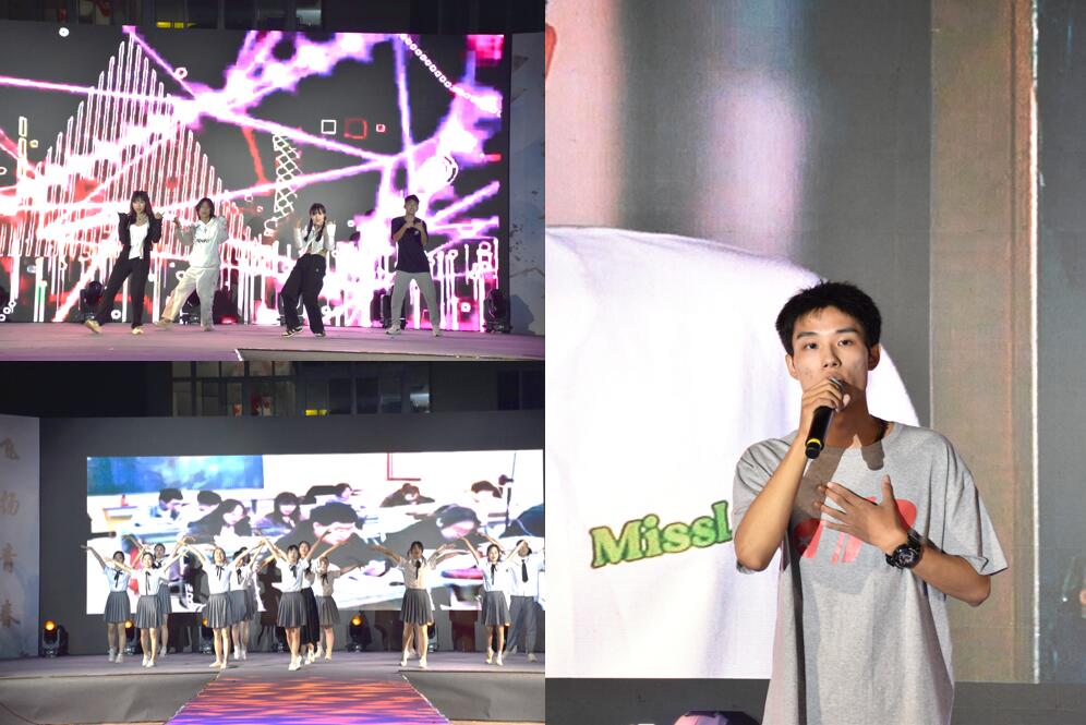 毕业展之后,S.K.Y街舞协会带来的舞蹈《乘风破浪的少年》将晚会推向了高潮。模特们在热烈的掌声和欢呼声中身穿青春活力的服装,伴随着欢快的音乐节拍声向观众走来,用坚定的步伐走向T台,展现着合师学子“积极阳光、朝气蓬勃”的青春风貌。由特邀嘉宾音乐学院2018级音乐学(师范)专业彭双捷带来的原创歌曲《一块六毛八》点燃了全场热情,他用声音记录了合师学子在母校生活的点点滴滴,表达出对母校的热爱之情。