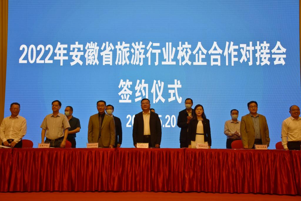 会上,徐成钢还代表学院与安徽省中国旅行社、北城世纪金源大饭店、两淮豪生大酒店、泓瑞金陵大酒店、潜山陌上海心谷民宿、青阳初心叁舍民宿等6家单位签订校企合作协议。