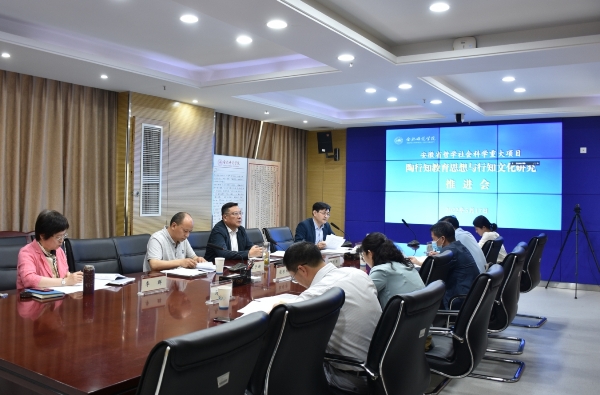 本网讯 5月17日上午,由我校徐成钢教授主持的安徽省哲学社会科学重大项目“陶行知教育思想与行知文化研究”推进会在锦绣校区召开。院党委书记、省陶研会会长徐成钢教授,宣传部、科研处、教师教育学院等相关部门负责人和全体在肥的课题组成员参加了会议。陶行知曾孙、上海市陶行知纪念馆副馆长陶侃,安徽省陶行知纪念馆馆长凌文,芜湖市陶行知研究会会长曹葆华等课题组成员线上出席会议。会议由省陶研会副秘书长钱立青主持。