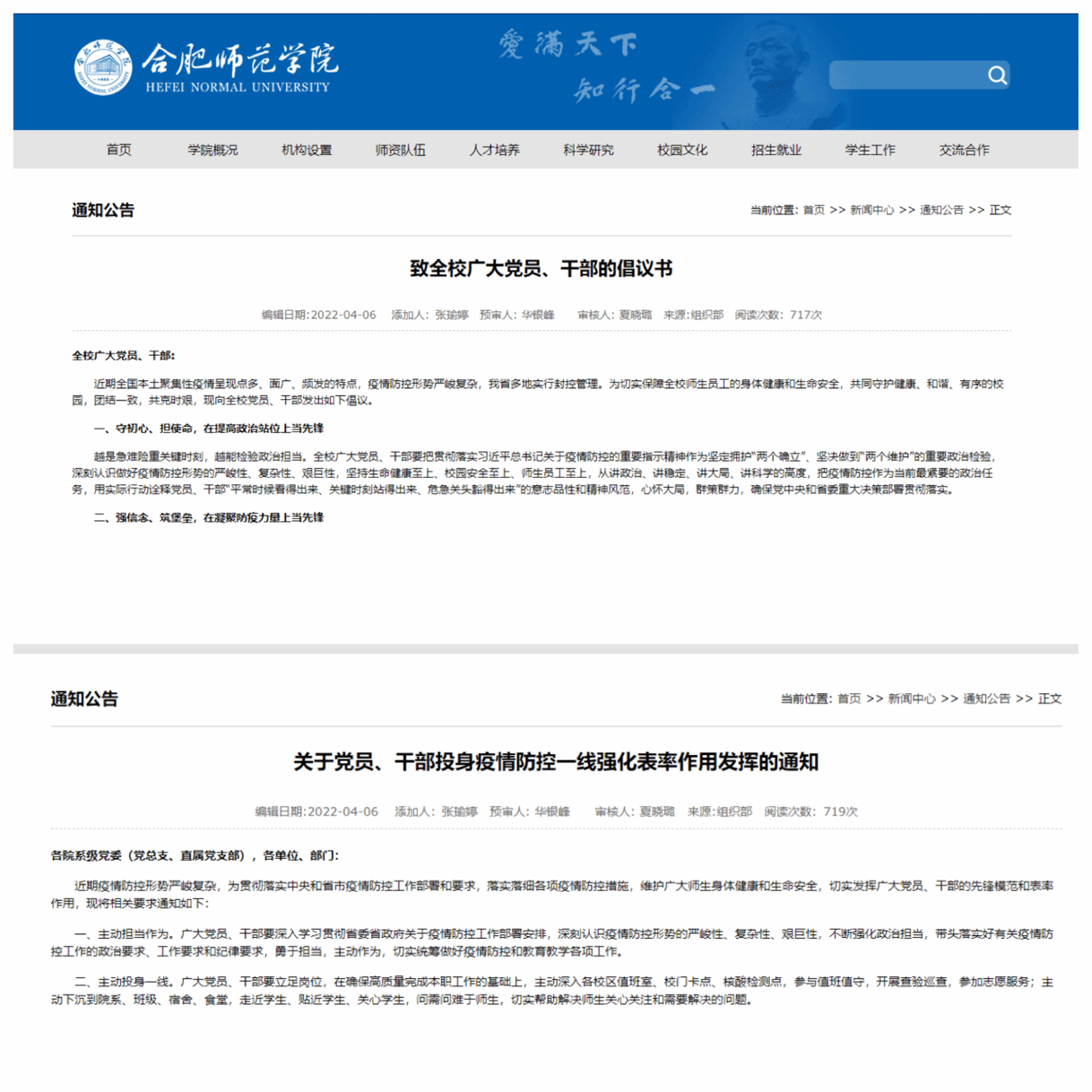 门岗值守是校园疫情防控的第一道防线,在锦绣校区北门和滨湖校区东门,每天都有学院处科级干部的身影。面对每天上千人次进出校园的人流量,全校处科级干部坚守岗位职责,用自己的细心、耐心和真心,配合做好体温监测、安康码行程码查验等各项具体工作,切实把疫情防控落到实处。在一线值守的机关干部说,“胸前是党徽,身后是师生。作为一名党员,作为学院的一份子,只要学院有需要,我们就应该有行动,保护师生生命健康是我们义不容辞的责任”。疫情当前,全校处级、科级干部,无论是党员还是非党员,人人皆参与防疫一线值守,竭尽全力为师生筑牢校园安全屏障。