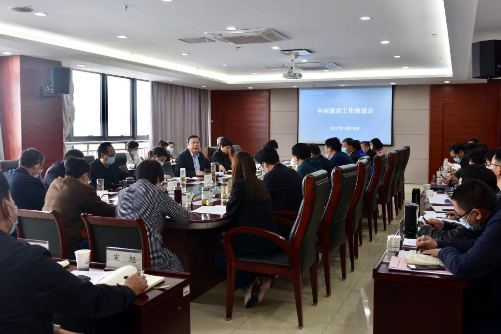 会上,吴昕春、谢阳群、徐文林分别就分管领域申硕建设有关工作提出了明确思路和工作要求;学位点建设专项工作组组长姚本先、李进华分析了学位点建设面临的新形势新挑战,就推深做实学位点建设攻坚提出了指导性安排。发展规划处、人事处、科研处、财务处负责人分别就牵头负责的申硕工作进展及下一步工作思路作了汇报;第一批申硕学位点牵头学院负责人重点介绍了对标对表情况及下一阶段具体工作安排。与会人员就申硕建设有关事项进行了深入交流研讨。