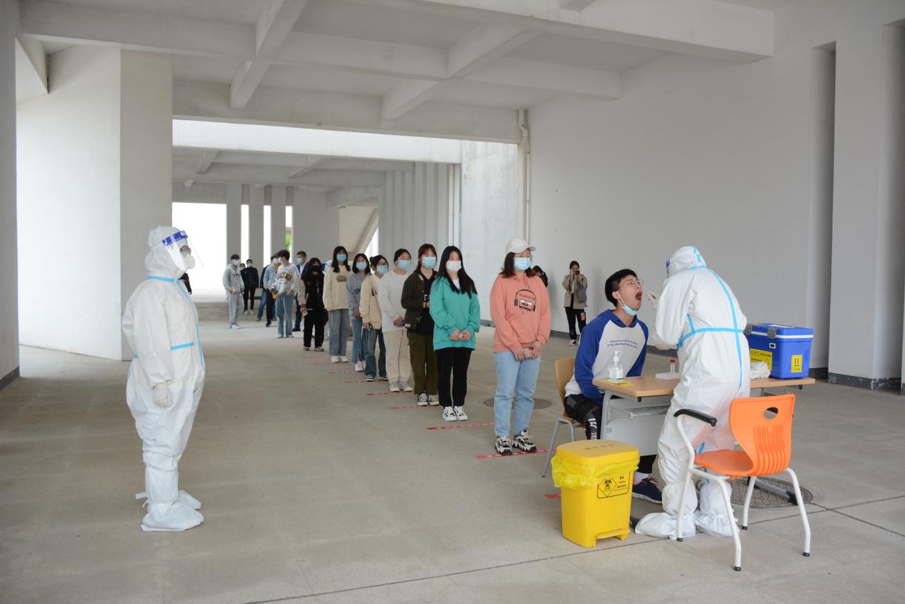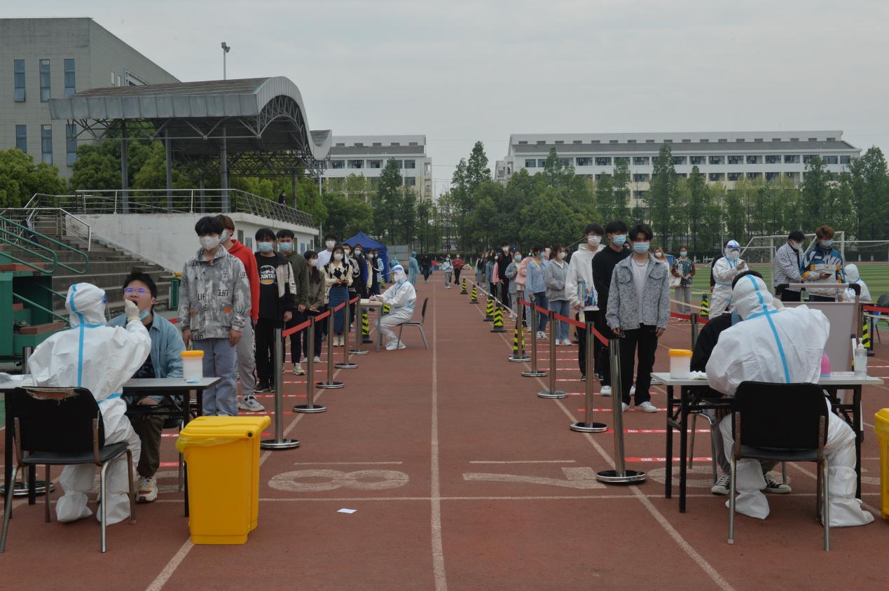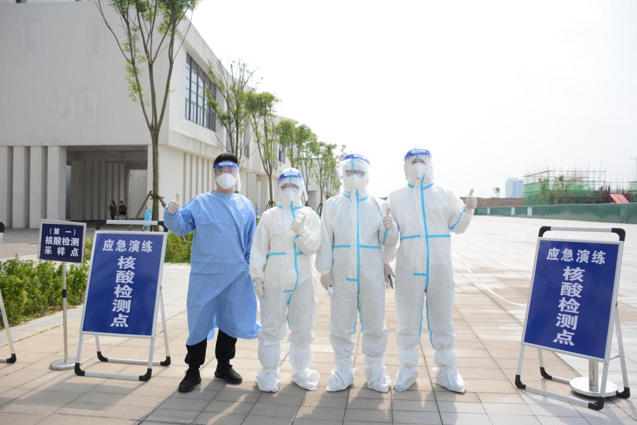 学院在锦绣校区体育馆和田径运动场、滨湖校区博学楼北广场等校园核酸检测指定区域设置演练检测点8个,并配套设置测温区、信息登记区、采样区、缓冲区、医疗废物暂存区、临时隔离区等多个功能分区。工作人员身着防护服、隔离衣,佩戴口罩、帽子、手套、面屏、护目镜,模拟实际工作场景在指定区域待命。学生代表提前准备好健康码和行程码,在工作人员引导下,测温后进入信息登记区,并保持1米间距,分组进入采样区,由医务人员逐一进行核酸采样,最后进行环境消杀。演练过程严格按照核酸检测流程规范操作,各工作组人员分工明确、响应迅速、配合密切、运转高效,现场井然有序。