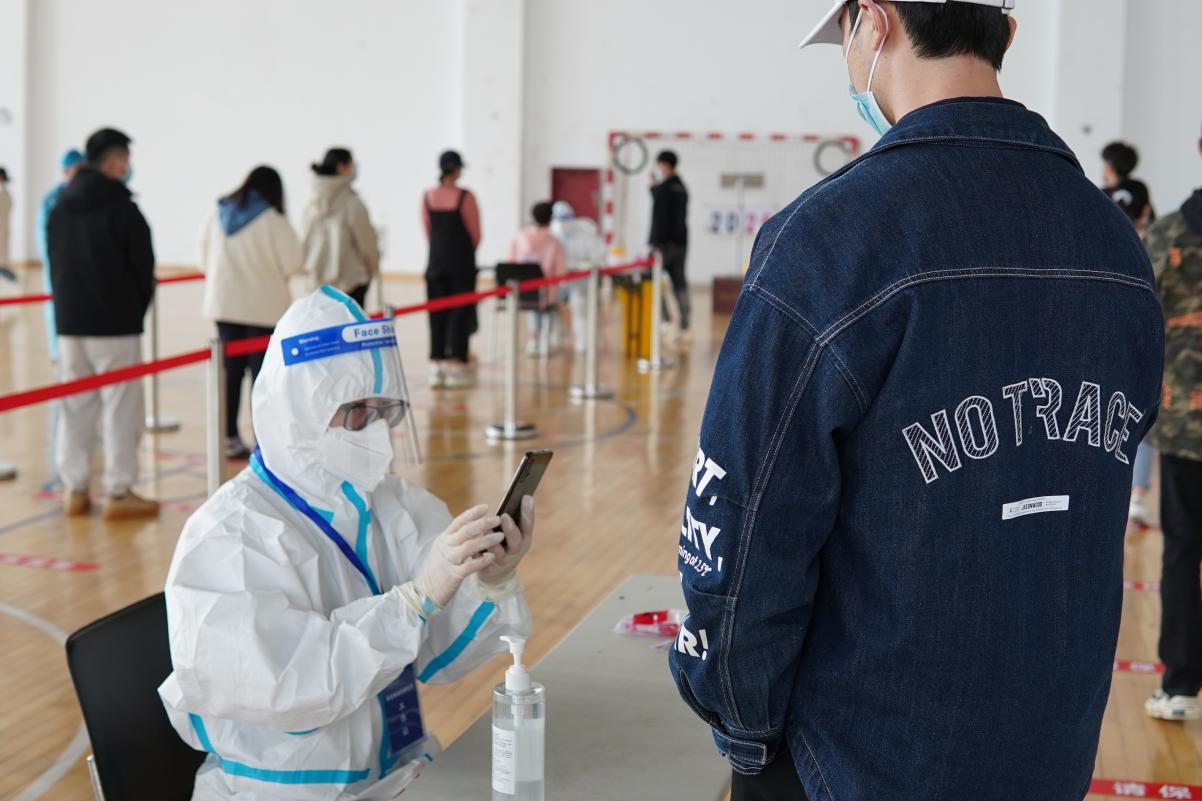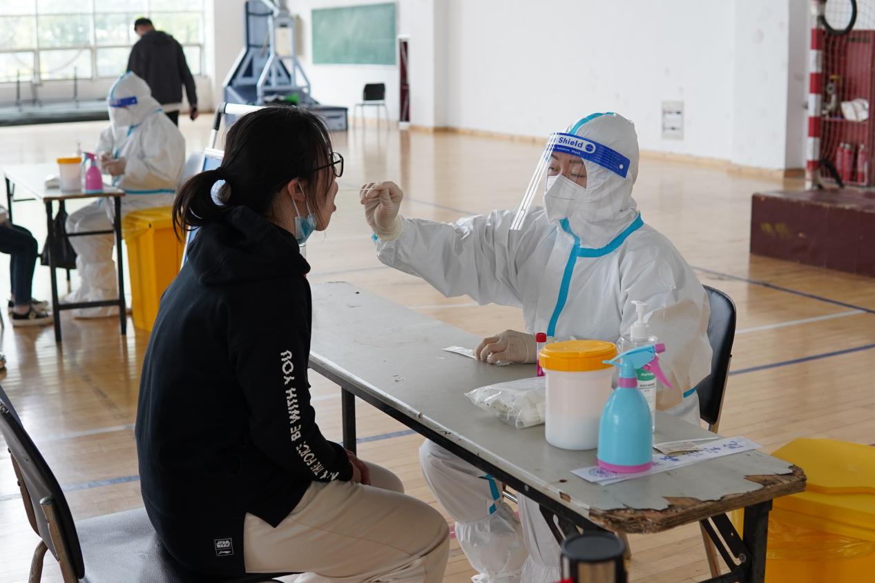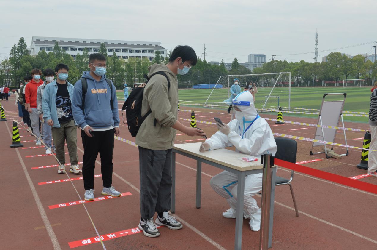 学院在锦绣校区体育馆和田径运动场、滨湖校区博学楼北广场等校园核酸检测指定区域设置演练检测点8个,并配套设置测温区、信息登记区、采样区、缓冲区、医疗废物暂存区、临时隔离区等多个功能分区。工作人员身着防护服、隔离衣,佩戴口罩、帽子、手套、面屏、护目镜,模拟实际工作场景在指定区域待命。学生代表提前准备好健康码和行程码,在工作人员引导下,测温后进入信息登记区,并保持1米间距,分组进入采样区,由医务人员逐一进行核酸采样,最后进行环境消杀。演练过程严格按照核酸检测流程规范操作,各工作组人员分工明确、响应迅速、配合密切、运转高效,现场井然有序。