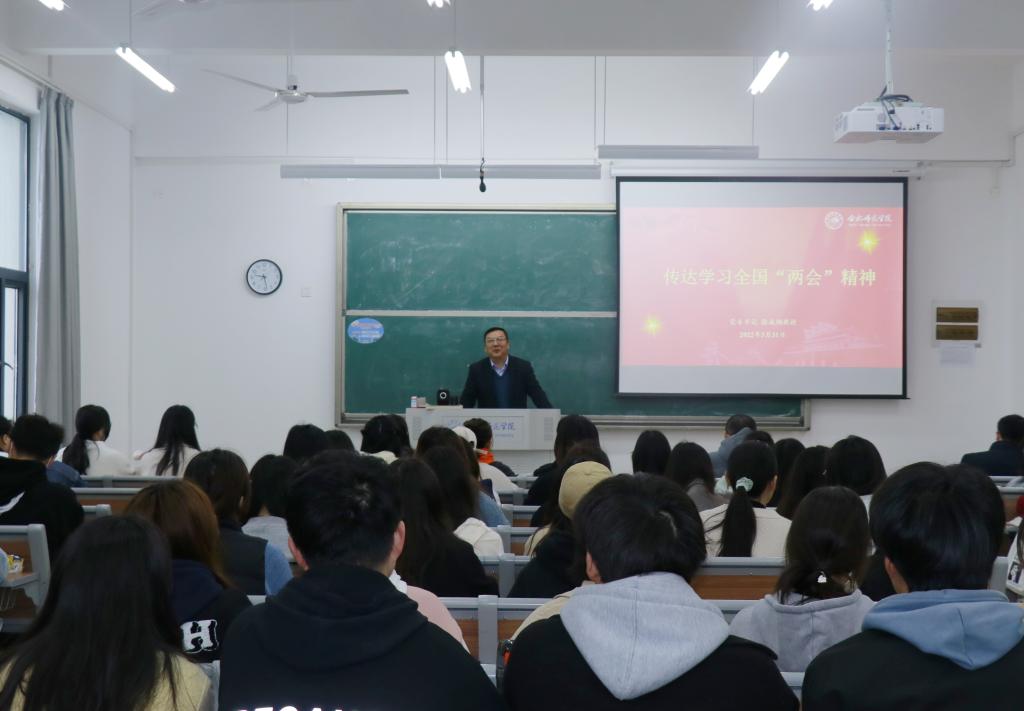 本网讯 为认真贯彻落实“校领导带头走进课堂讲授思政课,带头推动思政课建设”等工作要求,近日,院党委书记徐成钢来到滨湖校区铭传楼304教室,结合宣讲全国“两会”精神,为2021级计算机专业学生上了一堂生动活泼的思政课。