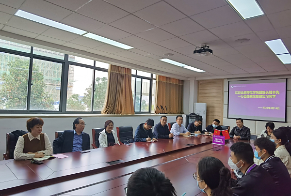 会上,在附属西安路学校参加包河区岗位实践送校对接会的包河区教体局局长蒋永利用会议间隙来到座谈会现场看望实习生,鼓励实习生好好实习,毕业后积极投身包河区教育事业。