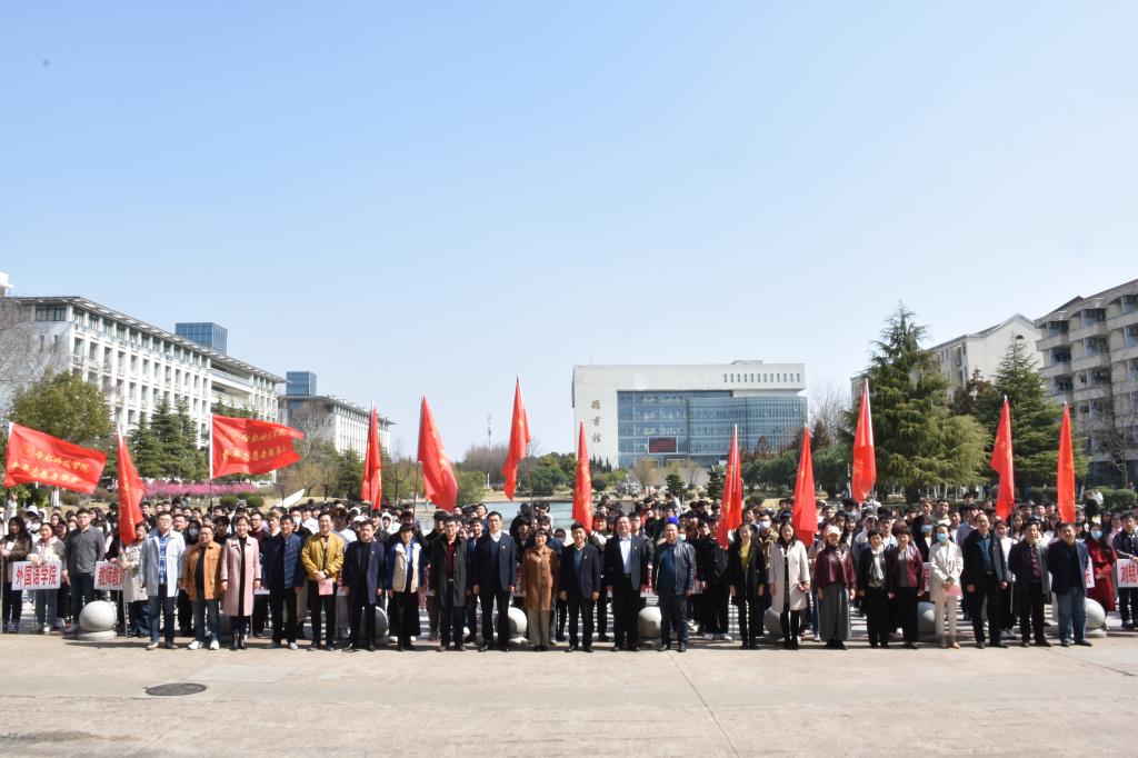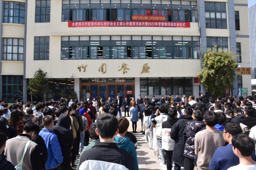 本网讯 3月4日,学院第四届弘扬社会主义核心价值观活动月暨2022年学雷锋活动启动仪式在锦绣校区生活广场举行。院党委书记徐成钢,院党委副书记吴昕春,合肥市经济技术开发区锦绣社区党委副书记张自红,院办公室、党委宣传部、学生工作部、就业创业工作处等单位主要负责人,各二级学院党团负责同志,青年志愿者代表近400人参加启动仪式。院团委副书记刁文彬主持仪式。