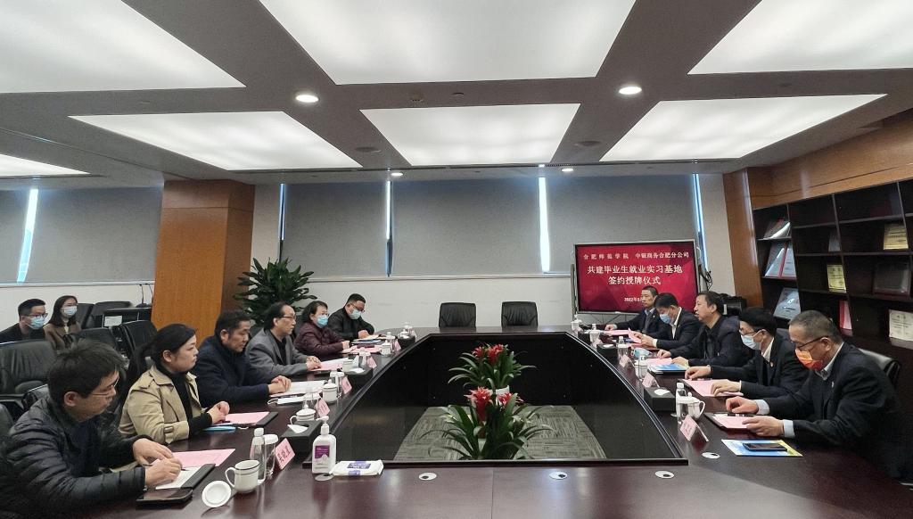双方进行了座谈交流。王宏伟代表公司对姚本先一行到访表示热烈欢迎。他简要介绍了中银金融商务有限公司特别是合肥分公司基本情况,重点介绍了必赢官网毕业生在公司工作生活情况,期待进一步深化银校合作关系,实现互利共赢。姚本先对王宏伟等热情接待表示感谢。他就学院历史沿革、办学特色、专业分布、人才培养、就业教育等进行了介绍。双方表示,将进一步加强沟通协调,对接发展战略,发挥彼此优势,在毕业生实习就业、员工培训、思想教育等方面拓展合作渠道,实现共同发展。