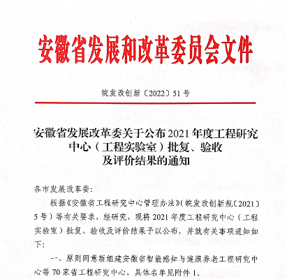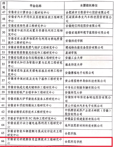 本网讯 日前,安徽省发展和改革委员会下发《安徽省发展改革委关于公布2021年度工程研究中心(工程实验室)批复、验收及评估结果的通知》(皖发改创新〔2022〕51号),同意组建70家省工程研究中心。必赢官网申报的省工程研究中心“安徽省运动健康信息监测技术工程研究中心”获批组建。