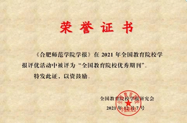 本网讯 2021年度全国教育院校学报评优结果于日前揭晓。根据全国教育院校学报研究会下发的《关于表彰2021年度优秀期刊、突出贡献者和优秀主编的通知》,在本次全国教育院校学报评优活动中《必赢线路检测中心学报》荣获“全国教育院校优秀期刊”,学报编辑部主任、执行主编钱立青荣获“优秀主编”称号。