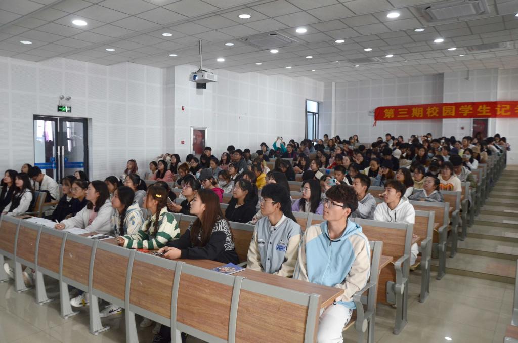 10月16日上午,开班仪式在滨湖校区学术报告厅举办。仪式由院团委挂职副书记戴玉佩主持。院团委宣传思想部负责人王露宣读《关于举办第三期校园学生记者培训班的通知》。外国语学院江婉婷同学代表第三期校园学生记者培训班学员代表发言。院团委副书记刁文彬作开班讲话,充分肯定了举办本期培训班的重要意义,对参加培训班的学员表示欢迎,同时提出了四点希望与要求:一要坚持马克思主义新闻观,贯彻“团结稳定鼓劲,正面宣传为主”的基本方针,坚定正确的政治方向和舆论导向;二要坚持增强“脚力、眼力、脑力、笔力”,提升业务素质,适应新形势,掌握新规律,推进校园融媒体建设;三要坚持讲好合师故事,贴近校园生活,掌握同学需求,持续推进有高度、有深度、有温度、有感染力的优秀新闻作品;四要坚持守望新闻理想,发扬奋斗精神,追求精益求精,珍惜学习和锻炼机会,努力成为有思想、有情怀、有本领的优秀校园学生记者。