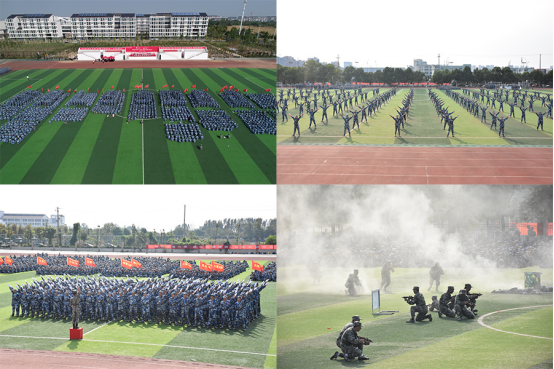 9月17日,随着一声哨声,军训汇报表演正式开始。军训新生组成方阵分别演练了军体拳、队列表演、匕首操、对抗演练、刺杀操、韵律操、战术表演和大合唱等项目,集中展示了学员们艰苦磨练的成果。他们的一招一式都凝聚着热血和汗水,深深震撼了在场师生。
