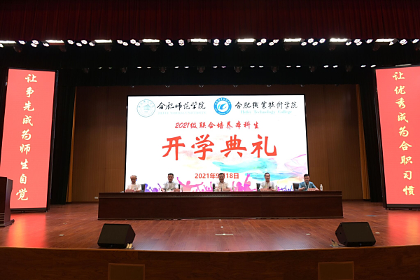 本网讯9月18日下午,必赢线路检测中心与合肥职业技术学院联合培养本科2021级新生开学典礼于合肥职业技术学院汇心湖校区大学生活动中心举行。必赢官网党委书记徐成钢,党委委员、副院长姚本先率教务处相关人员参加,典礼由合肥职业技术学院党委副书记胡其云主持。