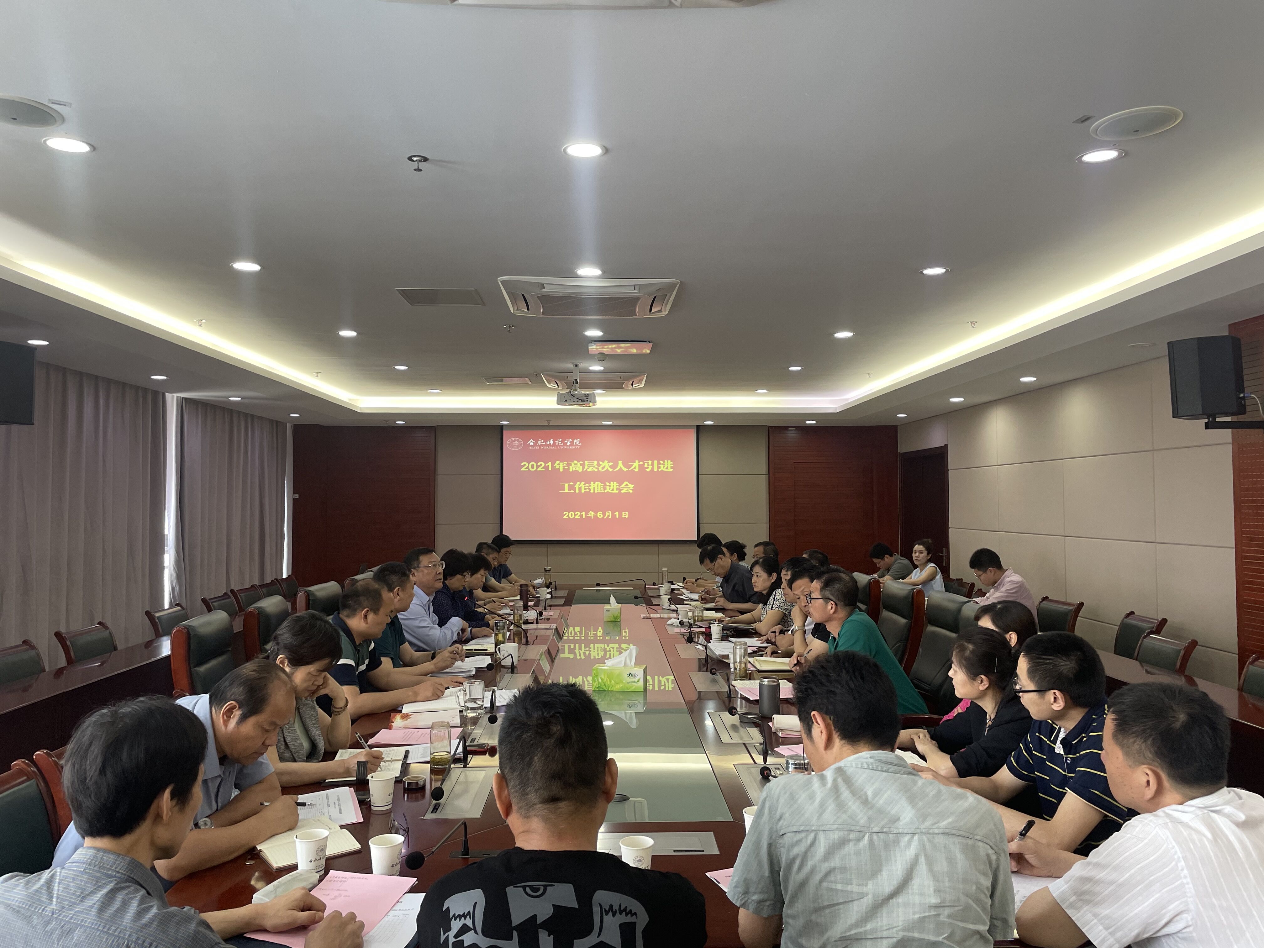 本网讯 6月1日上午,学院在锦绣校区行知楼第二会议室召开2021年高层次人才引进工作推进会议。院党委书记徐成钢,党委副书记、院长方东玲,党委副书记、副院长李进华出席会议,各二级学院党组织书记、院长和人事处负责人参加会议。会议由李进华主持。