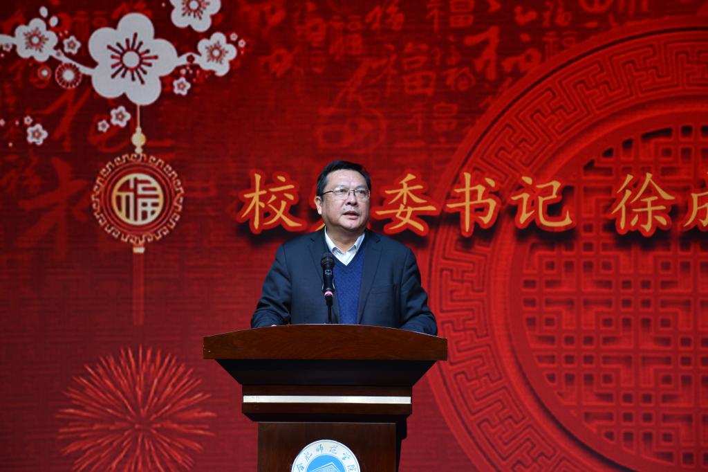徐成钢代表学校发表了热情洋溢的新年贺词,向一年来勤奋学习、努力工作的全校师生致以美好的祝福,向精心组织、积极参与本届科技文化艺术节的老师和同学们致以诚挚的问候。他指出,2020年是学校收官“十三五”、谋划“十四五”、统筹推进常态化疫情防控与党建事业发展的不平凡之年。全校师生风雨同舟、砥砺前行,抗疫情、抓党建、促发展,各项工作取得了新的进展和成就。学校广大团学组织和青年学生在“行知学堂”、“三优”创建、创新创业等工作和中国青年志愿服务项目大赛、挑战杯、中国大学生自强之星等活动中取得了优异成绩,展现出了昂扬风貌。新的一年,学校将坚持围绕中心抓党建,持续提升师生获得感幸福感,加快构建高质量人才培养体系,全面深化地方应用型高水平大学建设。他号召全校上下以习近平新时代中国特色社会主义思想为指导,努力用劳动筑梦、用实干圆梦,共创必赢线路检测中心的美好未来,以扎实业绩迎接中国共产党成立100周年。