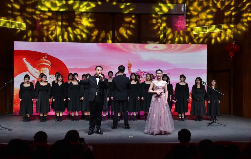 音乐学院民乐团的器乐合奏《喜洋洋》,营造了温馨祥和、快乐喜庆的氛围,以民乐的曼妙之声拉开晚会的序幕。2016届校友吴剑宇激情演唱的原创歌曲《太阳》,用声音的力量传递出阳光的温暖,激发了合师学子奋发向上、为未来拼搏进取的热情。大学生艺术团带来的舞蹈《疫·亿》展示了在疫情期间全国人民“亿心一意”,彰显了团结互助的中华民族传统美德,坚定了抗疫必胜的决心。校团委姚瑶老师和大学生艺术团带来的歌曲《英雄赞歌》令人热血沸腾,表达对抗美援朝战争英雄的敬仰,激励新时代莘莘学子们不畏艰险、砥砺前行的昂扬斗志。校团委学生干部集体朗诵的《行知志愿》,一词一句诠释出陶行知先生“捧着一颗心来,不带半根草去”的教育情怀,歌颂了合师人弘扬行知精神,投身青年志愿服务的风采。数学与统计学院的舞蹈《Forever yes》以动感的节奏、时尚的舞姿燃爆舞台,将晚会气氛推向高潮。音乐学院彭双捷、王睿哲、朱鹏、纪晨程四位同学带来的歌曲《莲花路1688号的日子》用声音记录了合师学子在母校生活的点点滴滴,表达出对母校的热爱之情。体育舞蹈协会的舞蹈《我们还年轻》以轻快的步伐展现着新时代青年的青春魅力,以活力的唱跳彰显出年轻一代的蓬勃朝气。音乐学院学生党支部的合唱《我的祖国》《走向复兴》,用嘹亮的歌喉寄予对伟大祖国繁荣昌盛的美好祝愿,表达合师学子对祖国山河的热爱。体育科学学院的舞蹈《活着1937》告诫我们要勿忘国耻,铭记历史,珍惜现在的美好生活。教师教育学院王磊老师、经济与管理学院赵燕老师和大学生艺术团的歌曲《不忘初心》优美动听,催人奋进,为此次晚会画上了圆满的句号。