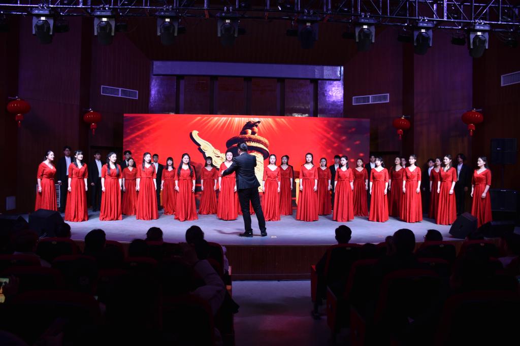 本网讯 12月30日晚,以“永远跟党走,扬帆新征程”为主题的学校第二十五届大学生科技文化艺术节闭幕式暨2021年新年晚会在锦绣校区音乐厅隆重举行。校党委书记徐成钢,党委副书记、校长方东玲,党委副书记吴昕春,副校长谢阳群,副校长姚本先,副校长曹卓良,纪委书记徐文林,学校各单位和部门负责人,各学院分团委书记,全体辅导员及各学院学生代表到场观看晚会。
