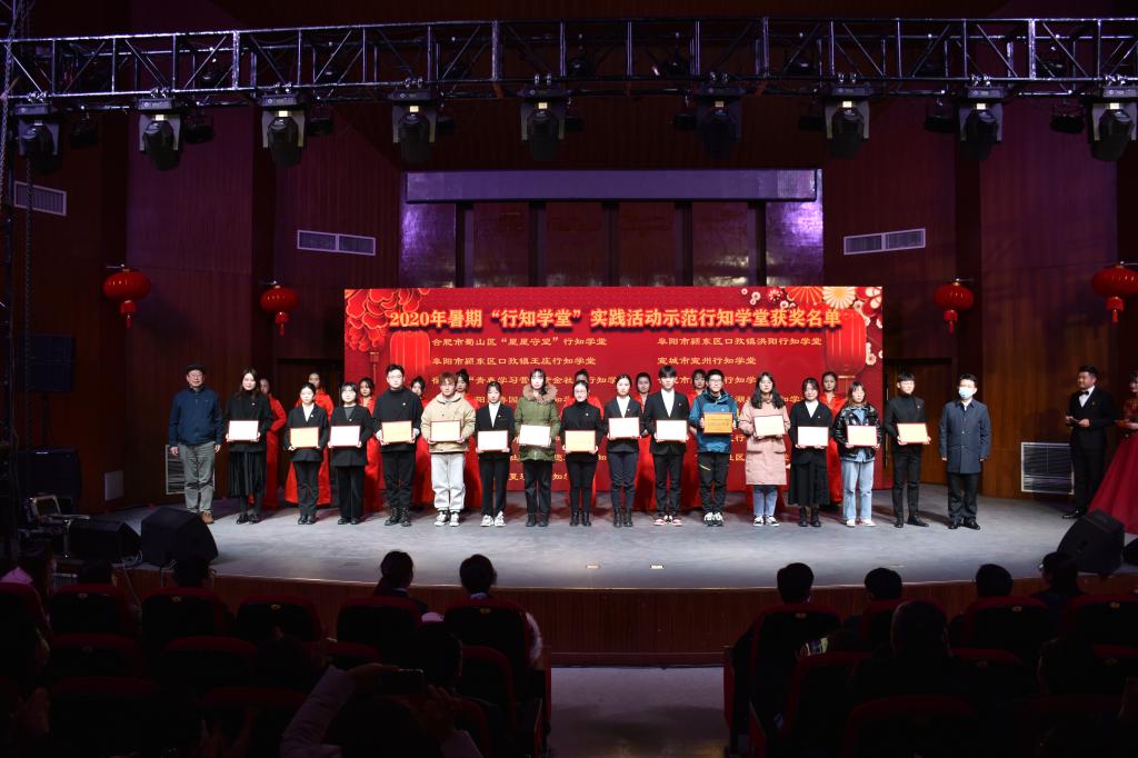 副校长曹卓良、校纪委书记徐文林为2020年暑期“行知学堂”实践活动示范行知学堂颁奖