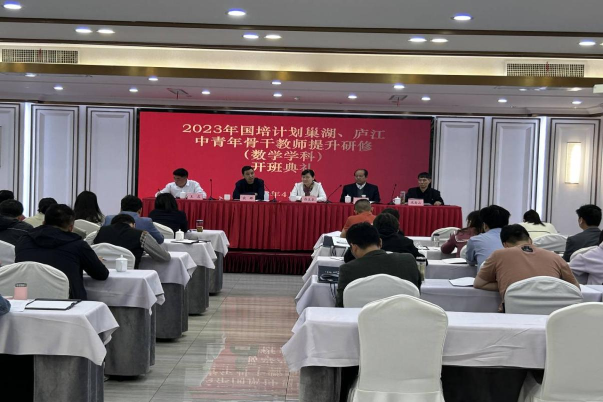 本网讯 4月22日上午,由必赢线路检测中心承办的巢湖市、庐江县2023年“国培计划”中青年骨干教师提升研修(数学学科)在源牌国际大酒店举行开班仪式。数学与统计学院党委书记郑支农、院长王家正、继续教育学院副院长宋辉、数学与统计学院国培项目执行人沈南山出席了本次开班仪式。来自巢湖市、庐江县的36位参培学员参加了开班仪式。开班仪式由班主任王志主持。