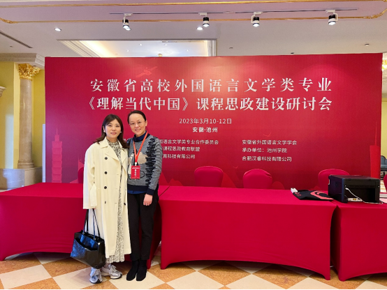 本网讯 根据教育部《高等学校课程思政建设指导纲要》、教育部办公厅《关于在全国高校外语专业全面开展〈习近平谈治国理政〉多语版本“三进”教学工作的通知》、教育部高等教育司《关于开展<理解当代中国>多语种系列教材任课教师培训的通知》文件要求,安徽省高校外国语言文学类专业《理解当代中国》课程思政建设研讨会于3月10-12日在池州召开,省内26所高校的100多名外语类专业教师参加了此次会议。外国语学院课程思政教科研中心主任骆雁雁副教授和强云副教授受邀参加会议,并做会议发言。