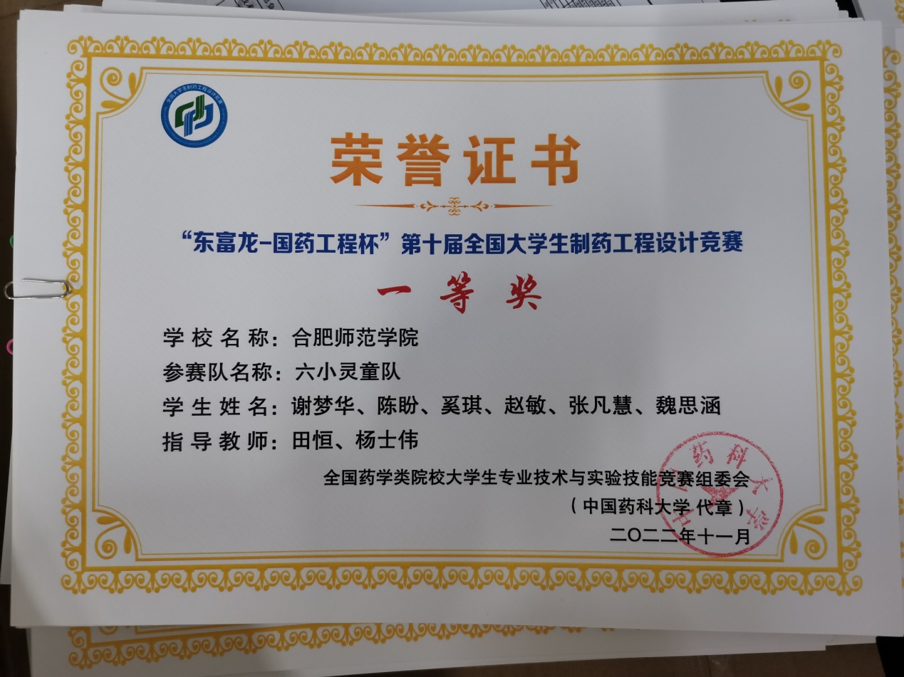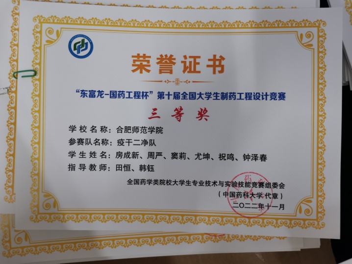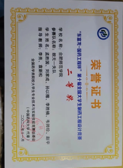 本网讯 近日,由全国药学类院校大学生专业技术与实验技能竞赛组委会主办,上海东富龙科技股份有限公司与中国医药集团联合工程有限公司协办,湖北工业大学承办的第十届“国药工程-东富龙杯”全国大学生制药工程设计竞赛总决赛落下帷幕。化学与化学工程学院学生团队获一、二、三等奖各1项,实现“大满贯”。